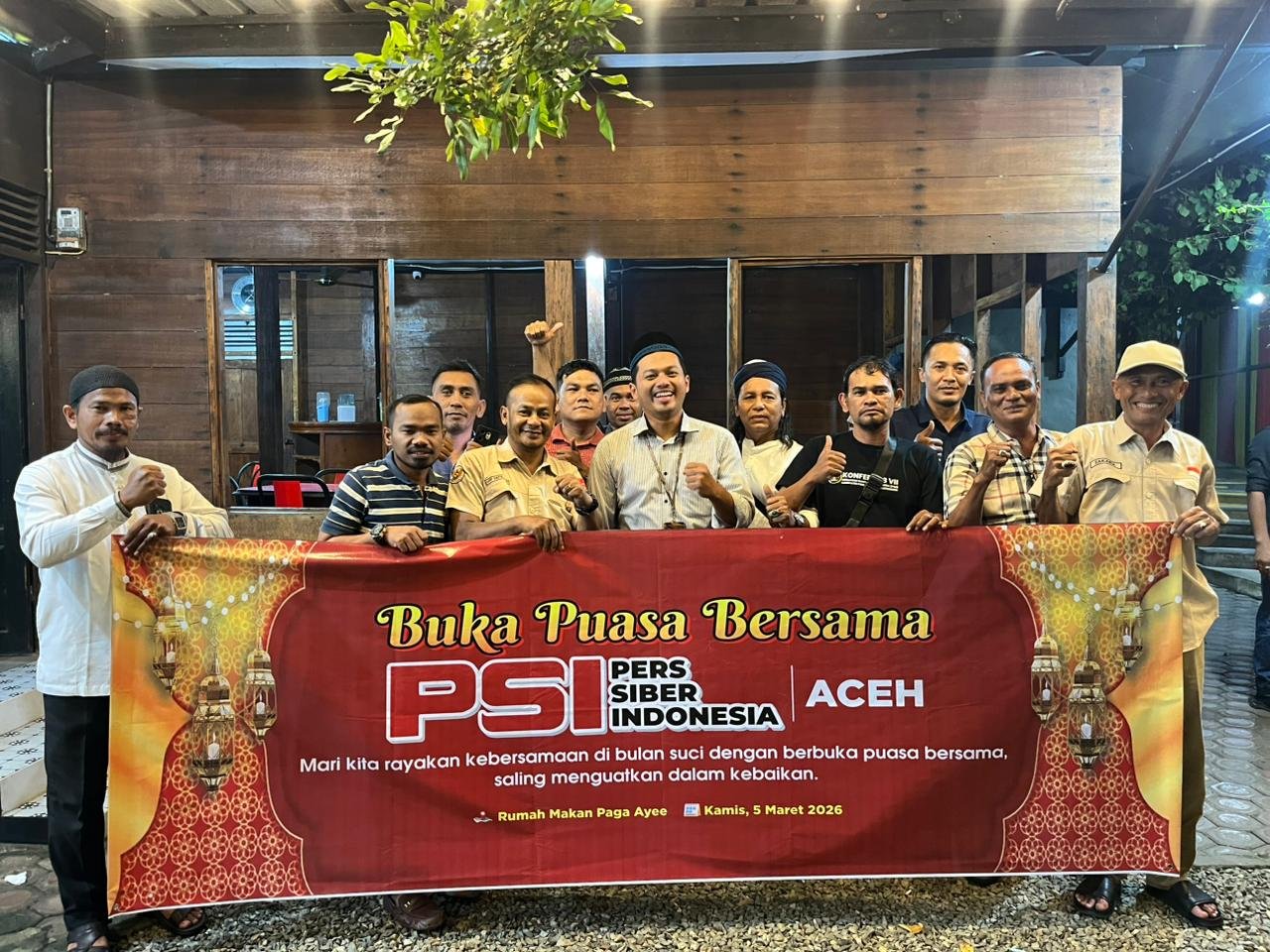 Jantho – Dewan Pimpinan Daerah (DPD) Pers Siber Indonesia (PSI) Aceh melaksanakan buka puasa bersama di Warung Makan Pagar Aye, Kecamatan Ingin Jaya, Aceh Besar, Kamis, 5 Maret 2026.