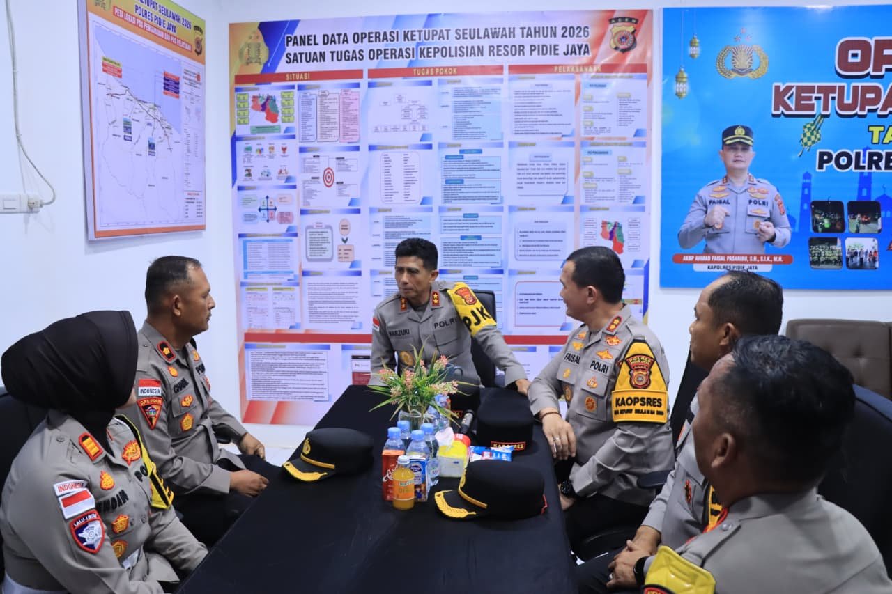 Turut hadir dalam kegiatan tersebut Wakapolres Pidie Jaya Kompol Iswahyudi, Kasat Intelkam AKP Rusdiono, Kasat Lantas AKP Endang Sulastri, Kasat Reskrim IPTU Fauzi Atmaja, Pawas Polres Pidie Jaya AKP Faisal, serta sejumlah personel yang melaksanakan pengamanan di Posyan Ops Ketupat Seulawah 2026.