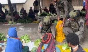 Puncak – Aktivitas Pasar Distrik Sinak, Minggu (22/3/2026), tampak lebih hidup dari biasanya. Di tengah rutinitas jual beli, kehadiran personel Satgas Operasi Damai Cartenz 2026 tidak hanya menjalankan patroli keamanan, tetapi juga membawa dampak langsung bagi para pedagang lokal, khususnya mama-mama Papua.