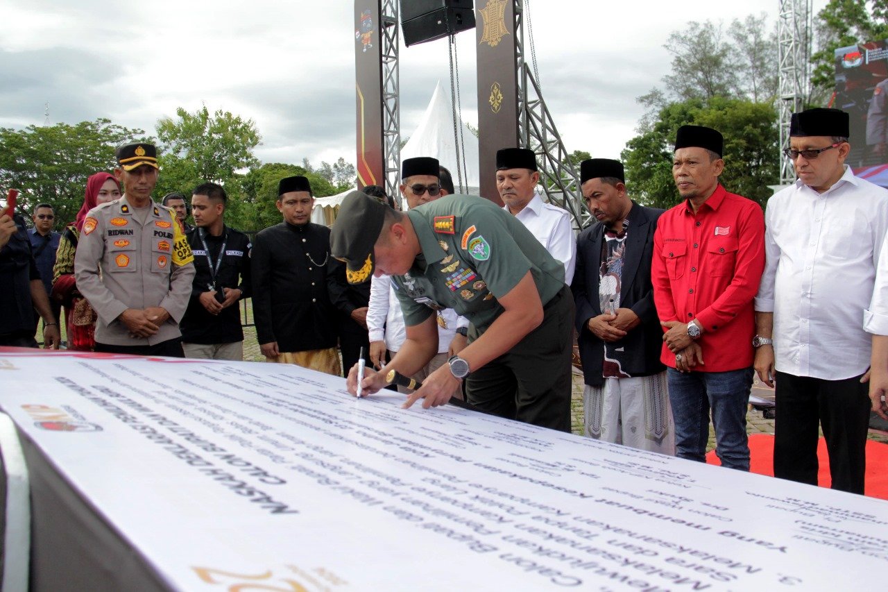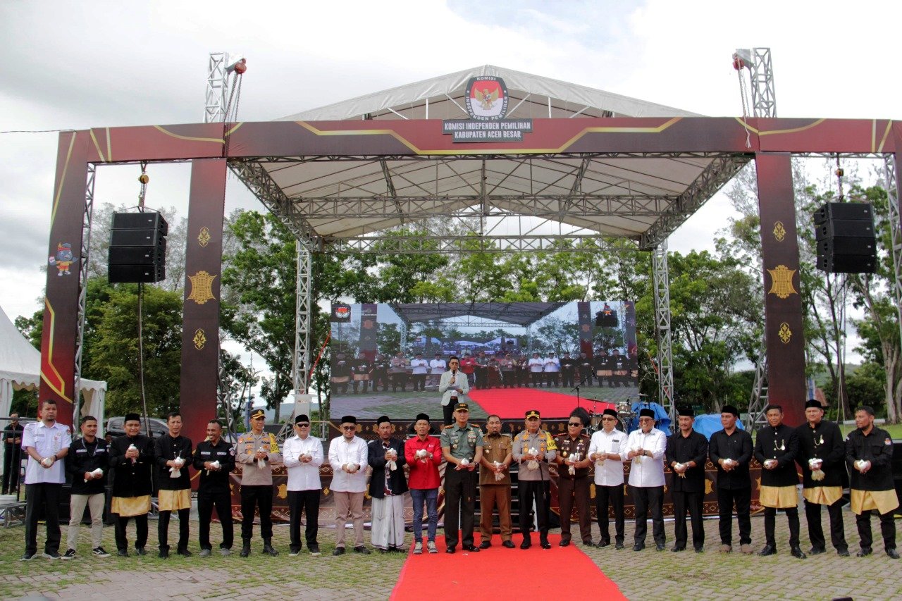 Dengan pelepasan burung merpati dan penandatanganan prasasti deklarasi, acara ini menandai dimulainya komitmen bersama dari seluruh elemen masyarakat untuk berperan aktif dalam menciptakan suasana yang damai, tertib, dan demokratis selama Pemilihan Bupati dan Wakil Bupati Aceh Besar Tahun 2024.