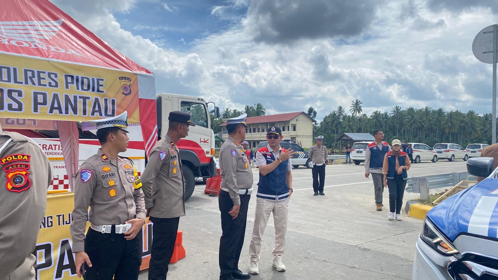 Banda Aceh — Dirlantas Polda Aceh Kombes M Iqbal Alqudusy, yang juga Kasatgasopsda Lilin Seulawah 2024 meninjau pos pengamanan dan pelayanan Natal dan Tahun Baru (Nataru) di Pelabuhan Ulee Lheue, Kota Banda Aceh dan Bundaran Lambaro, Kabupaten Aceh Besar, Sabtu, 21 Desember 2024.
