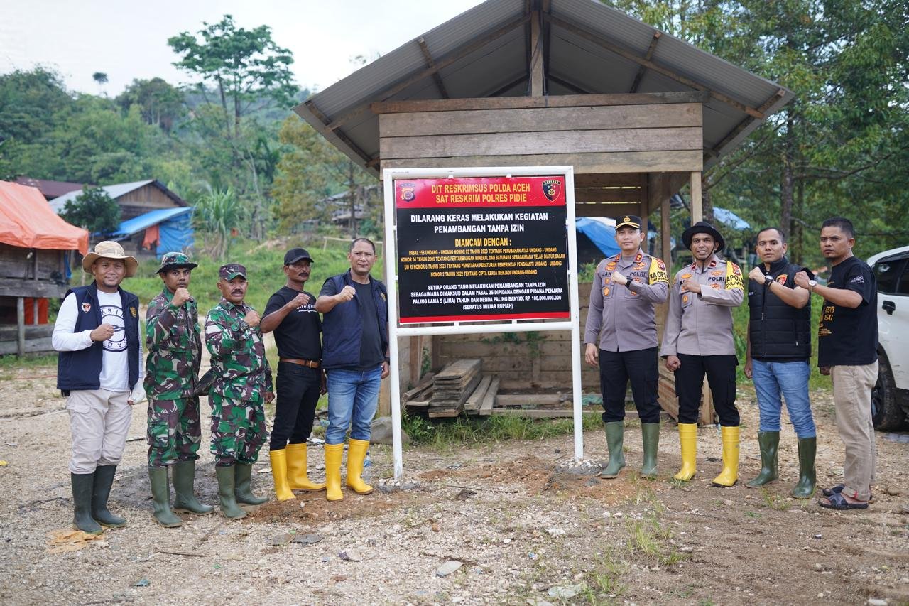“Aktivitas tersebut berpotensi merusak lingkungan, mencemari sungai, serta mengancam kelestarian ekosistem hingga ancaman terhadap kehidupan masyarakat yang bergantung pada sumber daya air, karena adanya bahan-bahan dan zat berbahaya seperti merkuri dan sianida yang digunakan oleh penambang ilegal dan kita tidak ingin lingkungan kita tercemar dan berdampak pada lingkungan warga sekitar” ucap Kapolres Pidie AKBP Jaka Mulyana, SIK, MIK.